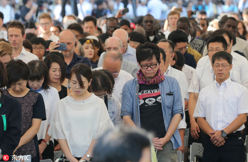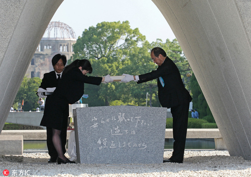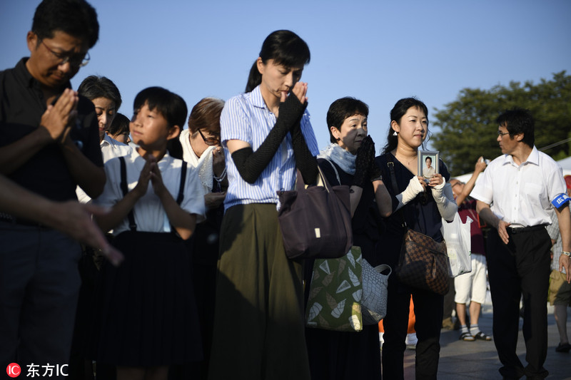 广岛举行和平纪念仪式:呼吁日本为无核世界发 2022-01-15 19:02:34 二级栏目 443 次浏览 当地时间2017年8月6日,日本广岛,日本民众在广岛和平纪念公园,参加广岛原子弹事件73周年纪念活动,悼念遇难者。据悉,1945年8月6日美国在日本广岛投掷原子弹,造成大量平民和军人伤亡。